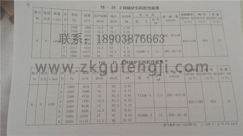 Y8-24型鍋爐離心(xīn)引風機 - 性能參數